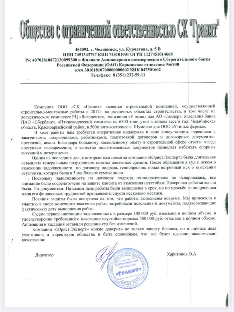 Что было сделано: В судебном процессе заказчик заявил, что работы ему предъявлены не были, акты не передавались. Нами была собрана убедительная доказательственная база, опровергающая утверждение заказчика, после чего заказчиком было инициировано заключение мирового соглашения.